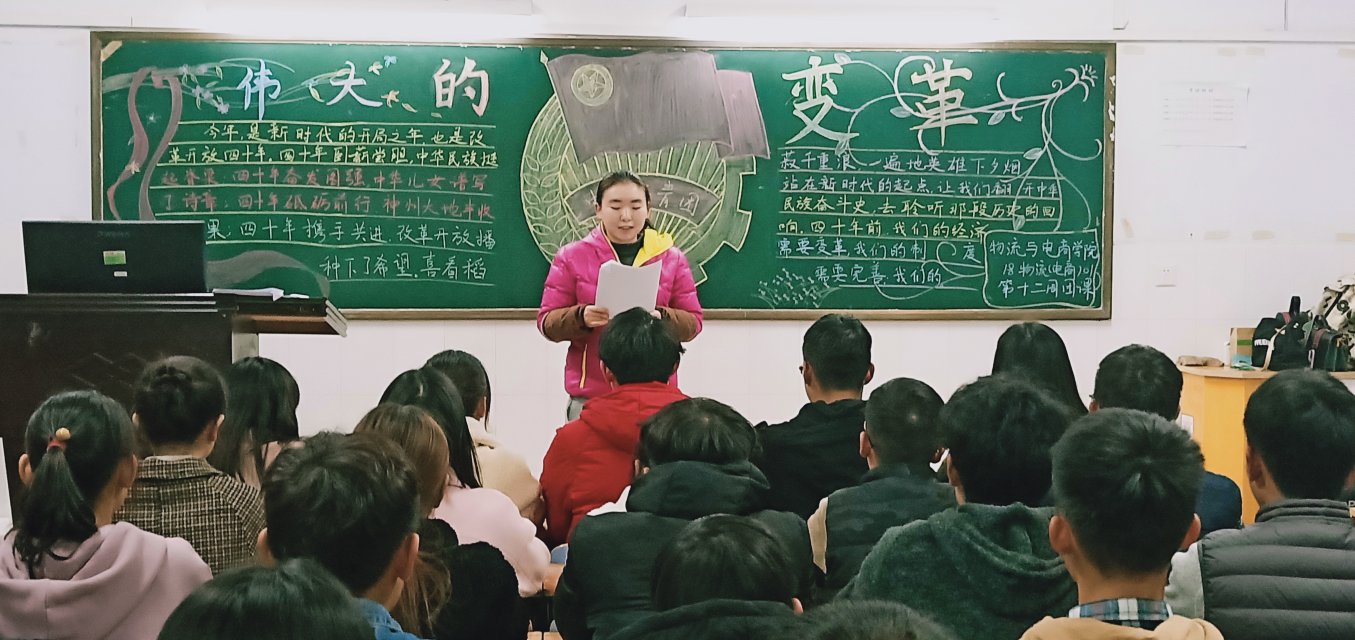 团课伊始,各班主持人介绍了改革开放四十年来所取得的丰硕成果。他们表示,改革开放要以思想为先,树立创新理念,寻找新路子,才能创造性地开展好组织工作,跟上时代发展的脚步。随后,各班同学以演讲,朗诵,分享故事等丰富多样的活动向我们展示了四十年来点点滴滴的改变。紧接着,主持人也强调实践是改革开放变化最扎实的答卷,要不忘初心,砥砺前行。随后,团支书也希望同学们树立与时俱进,艰苦奋斗的精神,敢于担当,争做新时代的优秀青年。期间,同学们积极参与,踊跃发言,现场气氛十分活跃。最后,团课在同学们的热烈掌声中圆满结束。