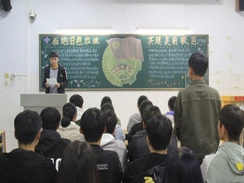 团课伊始,各班主持人向同学们介绍了有关白色污染的知识。通过主持人的讲解,同学们了解到白色垃圾对环境造成了严重危害,他讲到,白色垃圾难以降解的特性使它们成了污染空气、污染水体、污染土地的重要祸源。随后各班分别进行了“拒绝白色垃圾,共建美丽校园”的主题演讲,演讲的同学用慷慨激昂的话语号召同学们增强环保意识,抵制白色垃圾,爱护校园环境。之后,主持人通过问答的形式加深同学们对白色垃圾的认识。在这期间,同学们积极参与,踊跃发言,氛围非常活跃。最后,主持人对这次团课进行了总结,维护校园环境是我们义不容辞的责任,抵制白色污染,功在当代,立在千秋,他希望我们携起手来,共同拒绝白色污染,为建设美丽校园添一份力、增一分彩。此次团课在同学们的掌声中圆满结束。