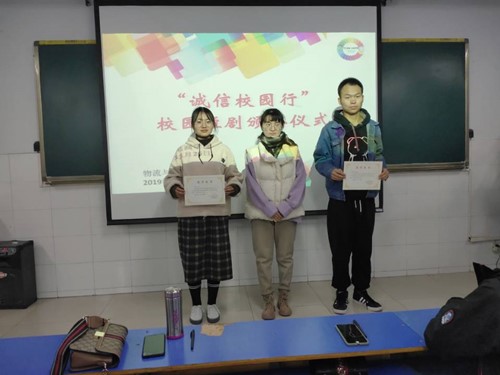 此次比赛由胡可鑫、尚津、刘阳三位评委老师打分,最终的参赛队伍的获奖名单如下,一等奖:19级物流管理一班;二等奖:19级物流管理二班;三等奖:19级电子商务二班。由胡可鑫老师为其颁奖。优秀表演奖:18级冷链一班和19级电子商务一班。由尚津老师为其颁奖。19级物流管理一班的杨俊峰与19级电子商务二班的杨晨,分别获得优秀男演员奖和优秀女演员奖。由刘阳老师为其颁奖。