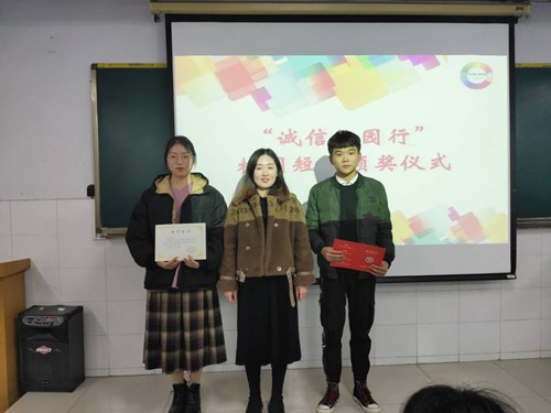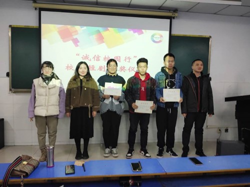 为进一步弘扬诚信立身的民族精神,营造积极、奋进、诚实、守约的文明校风,提高员工道德素质和精神文明水平,鼓励员工创建诚信校园,树立诚信学风,争做诚信学子,11月26日晚上18:40,365英国上市公司团学会资助部于E402教室举办了以“诚信校园行”为主题的校园短剧大赛决赛。此次比赛由辅导员老师胡可鑫、尚津、刘阳作为赛事嘉宾,共五支队伍参与表演。