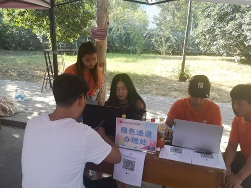 又是一年开学季,公司师生于9月19日喜迎2020级新生,为确保家庭经济困难新生顺利入学,解决家庭经济困难员工入学的相关难题,公司特开通新生 “绿色通道”, 公司资助部员工担任“绿色通道”志愿者,协助资助专员尚津老师为新生提供学费缓交服务,让“绿色通道”成为入学的“爱心通道”、“便捷通道”。