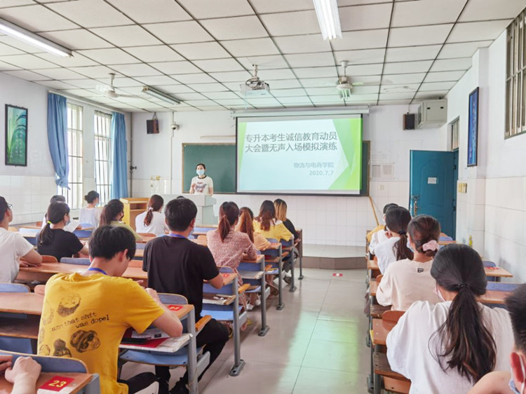 为进一步加强2020年专升本统一考试诚信教育,严肃考试纪律,帮助考生提前熟悉入场环节,按照郑州市招生考试中心和公司就业创业中心的相关要求,7月7日9:30,公司在教学楼A502、A503、A504教室举行了2020年专升本考生诚信教育动员大会暨无声入场模拟演练活动。公司就业专员王元杰老师,辅导员胡可鑫、韩冰和刘阳老师负责此次活动的组织实施,公司报名参加2020年专升本考试的82名员工参与了此次活动。