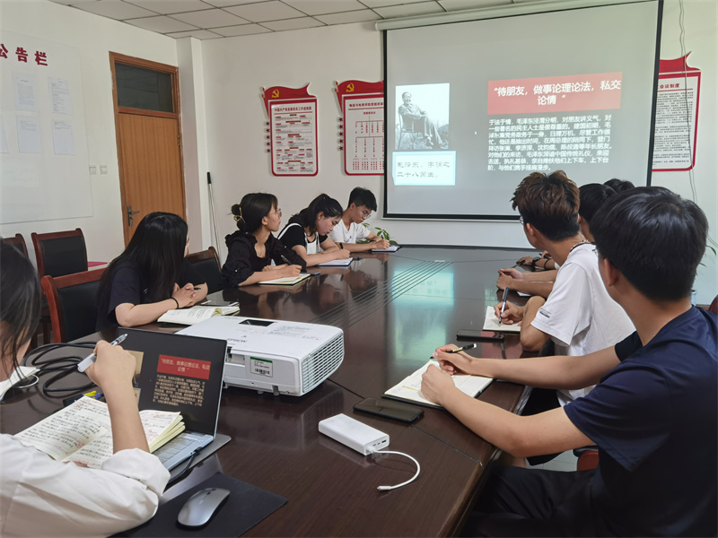 首先,由本期主持人刘丹阳向大家提出本次读书工作坊的主题——老员工的正确交友观,并借由诗人张岱的诗句,“人无癖不可与交,以其无深情也;人无疵不可与交,以其无真气也”,提出自己认为的第一条交友观即交友要有真情实意,又借用毛主席的话语,“待朋友,做事论理论法,私交论情”,提出第二条交友观即交友要切情有则。随后,主持人邀请在座同学依据上述人物事例来谈谈闪烁的人格光辉,参与的同学们也都针对这个问题展开了讨论,并且分享了自己和朋友之间的故事来发表自己对交友的看法。主持人将同学们的观点做出总结,交朋友最重要的就是要志同道合,真诚相待,共同进步。随后邀请尚津老师指导发言,老师提到《觉醒年代》中毛主席的征友启事以及他的作品《沁园春·长沙》中的恰同学少年,发表感想,同学们应该乐交诤友,交一些志同道合,三观一致的朋友。谈到交朋友是很有意义的,每个人都存在个体差异性,在广泛的交友中可以得到不同的感觉。最后,尚津老师送个同学们一句鲁迅先生的话,“愿中国青年都摆脱冷气,只是向上走,不必听自暴自弃者流的话。能做事的做事,能发声的发声。有一分热,发一分光,就令萤火一般,也可以在黑暗里发一点光,不必等候炬火”。告诫同学们在交友中应该严以律己,宽以待人,学会多包容他人,至此本次读书工作坊到此圆满结束。