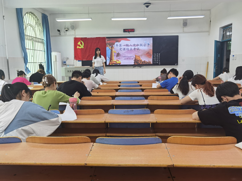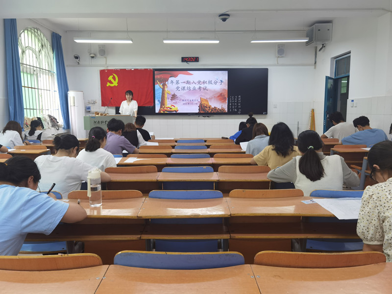 本次党课结业考试旨在检验入党积极分子培训效果,使大家更加深入地了解党的基本知识、党的路线、方针、政策等。考试内容紧扣习近平新时代中国特色社会主义思想、党的十九大精神以及党史、党章、党员发展程序等党的基本知识。考试采取闭卷形式,考试过程中,考生态度认真端正,考场秩序井然,考场纪律良好。