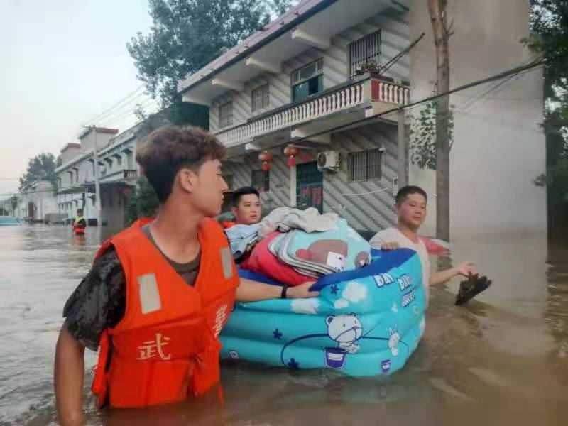 汛情就是命令。在与马舒昂同学的交谈中能够了解到,他在看到灾难到来的时候就坚定了抗洪救灾的念头,但始终没有找到救援渠道或组织。7月24日早晨,他遇到了支援新乡的退伍老兵,便主动请求加入,刚开始因车位紧张没有得到同意,于是老兵将马舒昂同学拉进了伊川退伍老兵抗洪抢险群。最后,马舒昂同学加入了第二批退伍老兵支援队前往鹤壁浚县,支援队中有两名在校老员工,他们的加入展现了新一代老员工的责任与担当。