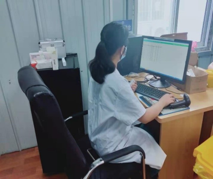 8月1日起,张一佳同学开展了更深入的志愿工作。根据国务院联防联控机制统一部署要求,河南省计划八月份开展15至17岁青少年第一针接种。由于接种人数多,医护人员有限,在经过专业人员的指导下,她负责疫苗扫码追溯和确认受种人员疫苗接种完成。张一佳同学需要根据接种人员的身份证识别获取其接种信息,然后将新冠疫苗从专用冰箱中取出,并对疫苗进行扫码追溯,再在电脑上登记接种人员的疫苗接种完成信息。最后,将疫苗和接种人员身份证转递给医护人员,由医护人员进行配药打针。