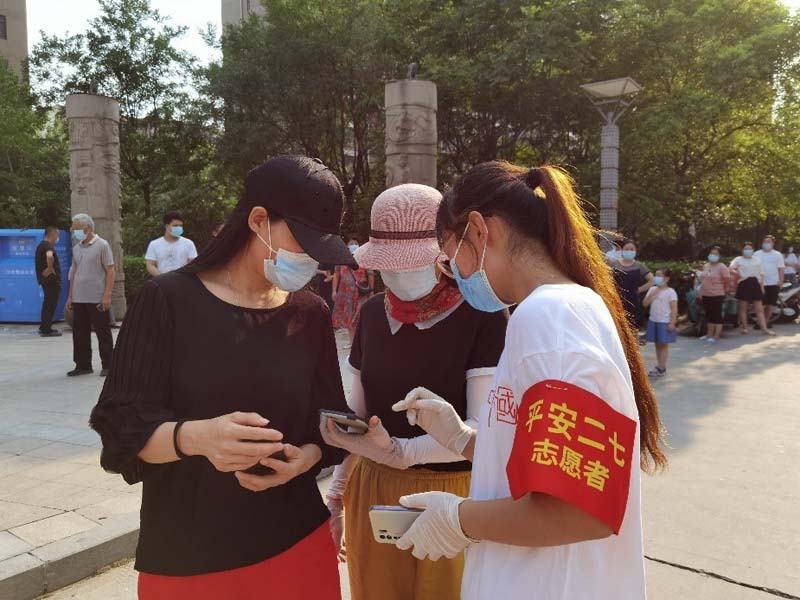 公司20级物流工程1班的李宁宁同学家住郑州市长江路街道和京广路街道交叉口,是7月31日第一批被封锁的小区的住户之一。她从最开始的害怕焦虑到看到党和政府的迅速行动,看到不眠不休的医务工作者,看到坚守岗位的社区工作者,看到团结互助的小区居民,便觉得没什么可怕的,就逐渐放宽了心,迅速决定投入到二七区疫情防控志愿服务当中,负责线上信息核查以及在核酸检测现场做志愿服务。