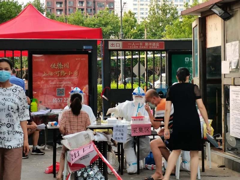 线下,李宁宁同学和志愿者们一起成为核酸检测的后勤人员。小区分楼层分单元分批下楼核酸检测并要求保持一米距离,她帮忙画一米线、搬桌子、支帐篷等。在核酸检测现场,她耐心引导居民进行核酸检测人员信息登记,并用喇叭告知居民检测时的注意事项,提醒大家检测后及时回家,维护现场秩序。同时,她按照楼层号单元号提醒每一户居民下楼做核酸检测,看到医护人员在炎炎夏日中辛苦工作,她用大冰块冰糕给医务人员们降暑。
