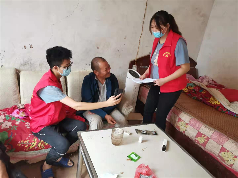 在新一轮的疫情暴发之际,赵微同学成为了南阳市西峡县田关乡的一名志愿者。刚开始的几天,她在别沟村进行疫情防控卡点处对过往车辆进行信息登记和体温测量,检查相关行程码和健康码等。之后,又被分配到田关村、王营村和刘岭村等帮助村干部协助当地疫苗接种筛查,尽量保证人人接种,并且对老年人和小孩进行健康码查询,确保当地未出现特殊情况。