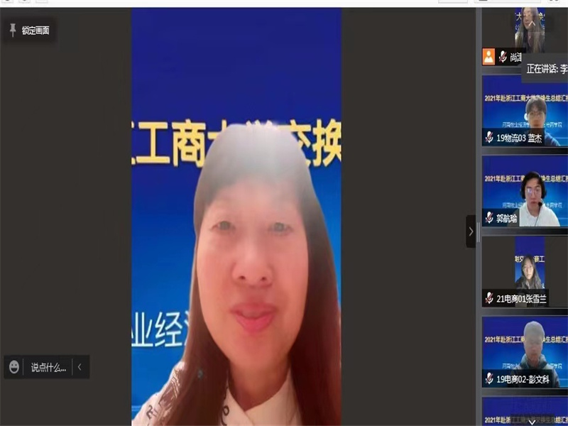 2022年1月7日晚上,365英国上市公司以线上形式举办赴浙江工商大学交换生总结汇报会。党委书记于晓胜教授、经理曹献存教授、党委副书记陈永刚、教学办主任任佳佳,团委副书记王雪冰、辅导员尚津、夏静、张排杰,以及赴浙江工商大学交换学习的8名员工和2021级部分员工代表参加了此次会议。会议由副经理李艳菊教授主持。