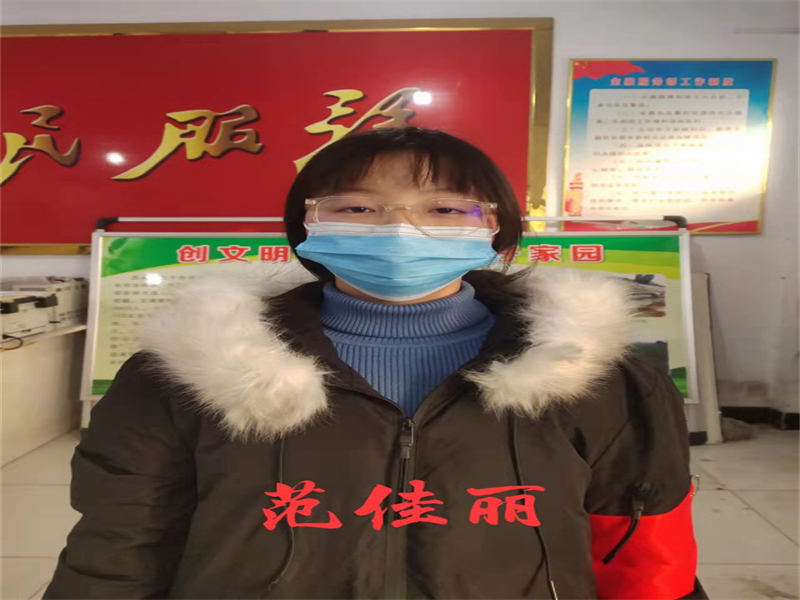 来自河南省南阳市的21电商02班的金鑫同学,当她得知社区紧急招募志愿者后,也立即加入了家乡疫情防控工作中,成为社区疫情防控志愿者的一员。金鑫同学的主要工作为在街道口登记返乡人员,并对进入社区的人员进行体温检测。她认为,作为一名老员工,应在祖国和人民最需要的时候挺身而出,贡献青春力量。