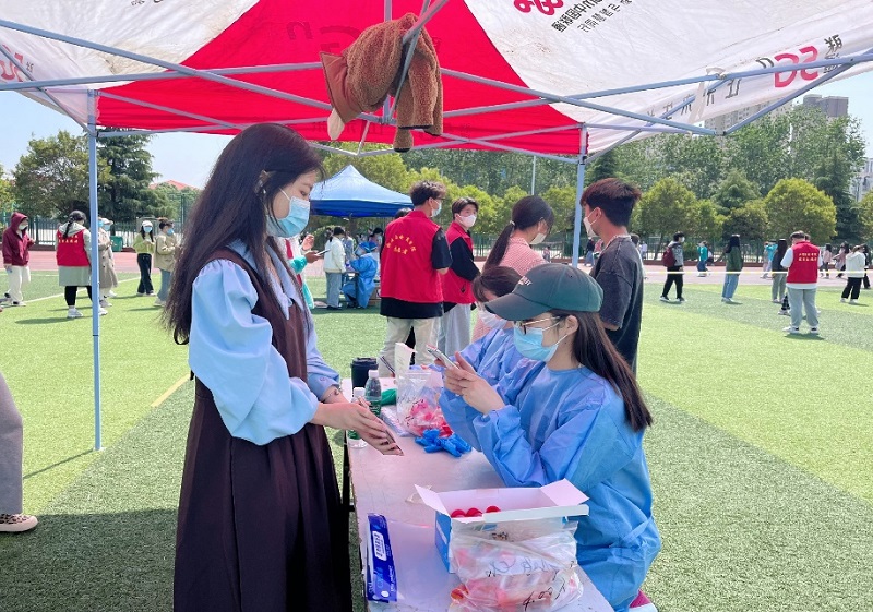 疫情就是命令,防控就是责任。在公司多轮核酸检测现场,夏静老师主动担当作为,参与核酸检测志愿服务工作,化身“大白”奋战抗疫前线,主动担任核酸检测采样点扫码登记员,减轻医务工作者压力。在员工公寓楼出入口,夏静老师担任“守门人”,引导员工遵守公司现行防疫规定,有序出入宿舍。为了保持防疫期间餐厅限流,维持餐厅秩序,夏静老师在桃园餐厅入口,化身餐厅入口引导员。