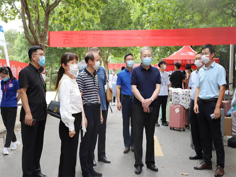 当天上午,公司党委书记穆瑞杰、副董事长张伟、副董事长姚毅、党委办公室主任宋华凯、党委学工部部长郝景昊、英才校区综合服务直属党支部书记王在钦等校领导来公司进行工作视察,提出了相关建议,与公司领导会面,勠力同心为新生打造和谐友好的校园氛围。公司党委书记于晓胜、经理曹献存、党委副书记陈永刚、副经理李艳菊、团委书记申作光、团委副书记尚津以及新生辅导员杨雪、马玉峥等来到现场查看新生准备工作,仔细询问迎新相关工作情况,与2022级新生亲切交流,期望他们在新的征程中脚踏实地、勇攀高峰,并对辛勤忙碌的工作人员和志愿者们表示衷心感谢。