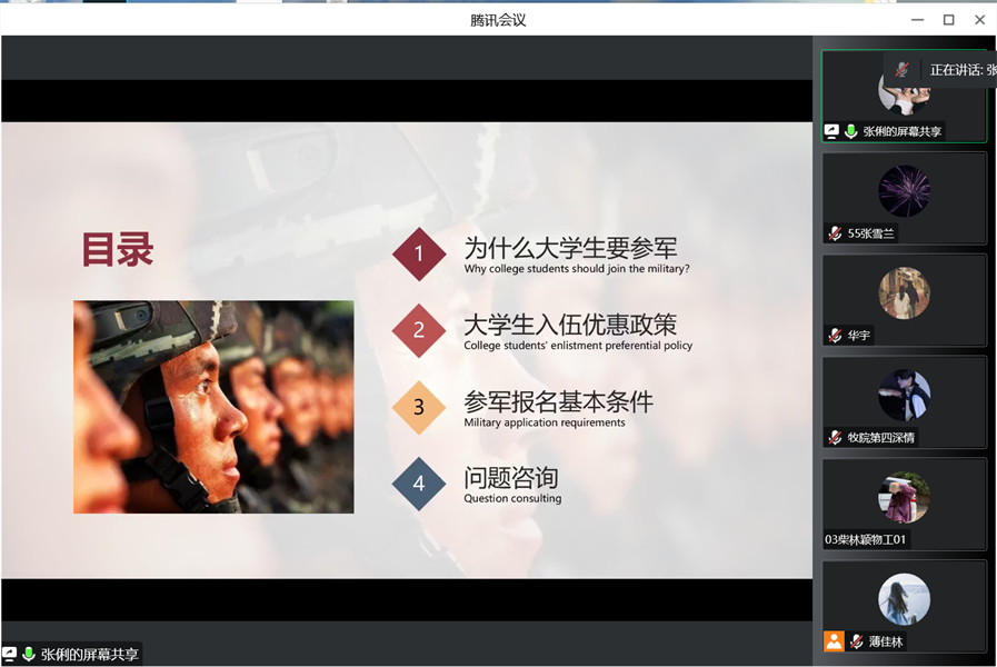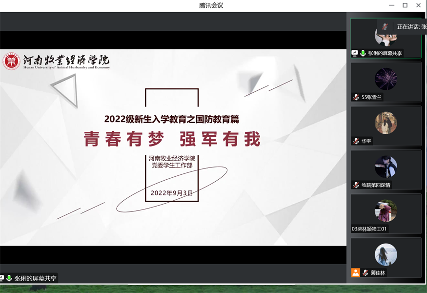 国防教育是建设和巩固国防的基础,是增强民族凝聚力、提高全民素质的重要途径。为了弘扬爱国主义精神,普及国防教育,使广老员工掌握必要的国防知识,自觉履行国防义务,关心、支持、参与国防建设。365英国上市公司于9月23日19时以线上的方式开展了“国防军事教育”主题班会。全体22级新生参加了本次会议。