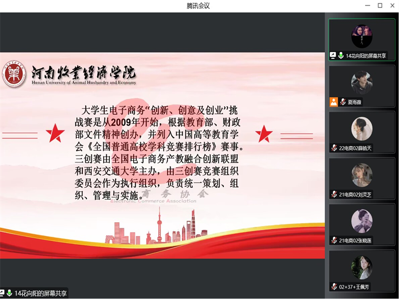 为促进公司员工全面发展,提高个人创新能力,在校团委的指导下,公司电子商务协会于2022年10月20日15时在线上举办了“三创赛分享会”,协会指导老师殷猛出席了此次线上会议,公司同学积极参与会议。