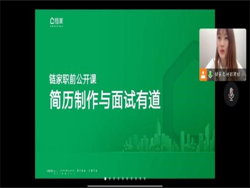 公开课开始前,链家总部校园品牌部招聘主管张宁宁女士要求进入会议的员工进行扫码签到,便于后期抽奖活动,成功调动了课上氛围。上课伊始,张女士进行了自我介绍,并通过PPT展示了这节课的两大主要内容,分别是:简历制作——人岗匹配,面试交流——自我呈现,使同学们对本节课内容有了大致的了解。张女士首先点明了面试官对求职员工的普遍认知:“饥不择食”盲目、“面试准备”疏忽、“自我认识”模糊、“面试交流”无章法等,之后,张女士提出提升方法:可以通过认识自己、了解岗位、简历制作等方面改变求职员工的错误行为,使其进行良性就业。认识自己可以从自我认识、外源认识、择业倾向等方面对自己进行全面了解,帮助自己选择合适的就业岗位。求职者可以通过定义核心能力、充分认识岗位两方面了解岗位并分析自己是否适合岗位要求。张女士在简历制作的讲述上更加细致化,首先讲解如何准备简历,其次讲解高分简历的内容与版式、制作高分简历的误区,最后展示了六份问题简历和优秀简历。张女士接着讲解了面试前、面试中、面试后需要注意的问题,给将要面试的的同学打了一剂预防针。张女士还引用实例,通过展示李嘉诚与其司机的案例引导员工如何通过员工、面试官、同学、校园大使、老师等关键人物帮助自己顺利入职,最后,张女士建议同学们进面试总结,无论成功还是失败,都要重新回顾自己在面试中的表现,反思自己,优化自己,保持乐观的心态,正视面试结果。