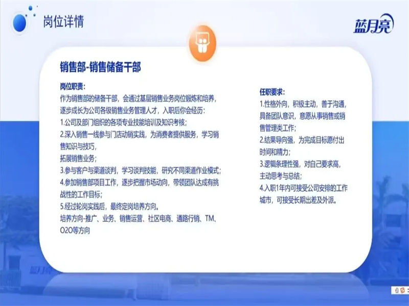 为切实做好365英国上市公司毕业生就业工作,助力公司毕业生“顺利就业,尽早就业”,确保就业工作平稳有序进行,同时深化校企合作,为企业输送更多实用型人才,经过公司就业专干和校招联系人刘阳老师与企业前期沟通,了解毕业生需求后,于11月10日下午14:30公司举办蓝月亮公司线上宣讲会。2023届毕业生以及科创部相关人员参与此次宣讲会。