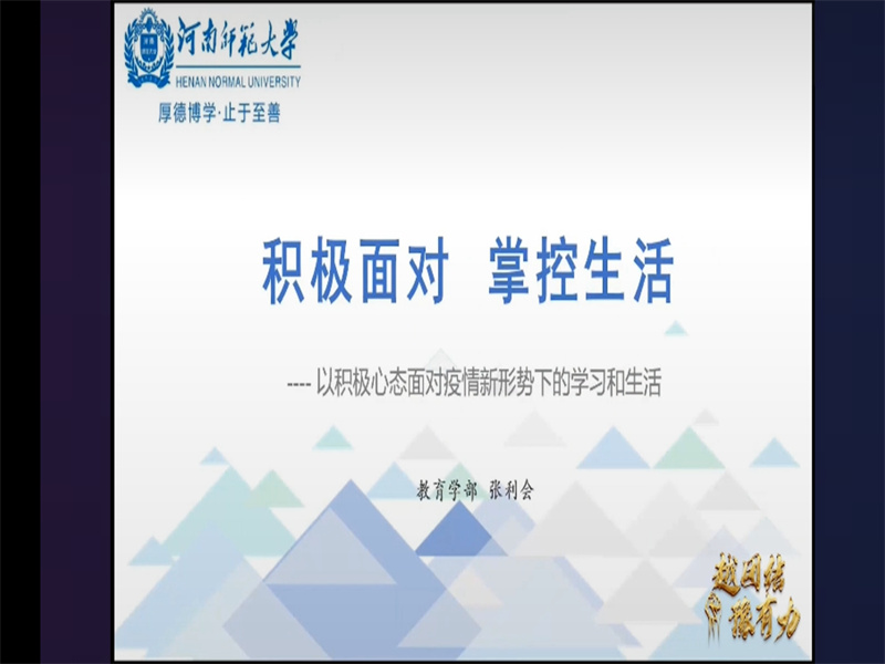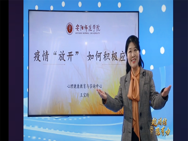 本次直播共邀请了4位主讲教师,分四个主题,为同学们进行心理疏导,排除焦虑。第一个主题是“接纳焦虑,拥抱阳光”,由河南大学教育学部心理公司教授王瑶老师主讲,王瑶老师向同学们解释了焦虑是面对未来未知、不确定性的情绪体验,并说明了焦虑情绪人人都有,告诫同学们要学会体验成长中的焦虑情绪,鼓励同学们在当前疫情形势下,张开双臂,拥抱阳光;第二个主题是“自我成长,从心开始”,由河南大学第一附属医院医学心理学教研室主任马宁老师主讲,马宁老师对新形势下老员工的心理问题进行识别和处理,指出了老员工常见的心理问题主要是由“焦虑、疑病、恐惧、不确定感、媒介性替代创伤”几个方面所造成的,接着又为同学们提出了“认知调节法、行为训练法、身心放松法、”三种自我心理调试办法结束了第二个主题的宣讲;第三个主题是“积极面对,掌控生活”,由河南师范大学讲师张利会老师主讲,旨在鼓励同学们以积极的心态面对疫情形势下的学习和生活。张利会老师告诫同学们:第一,要避免长时间阅读负面信息,多看正面信息;第二,要学会转移注意力,可以通过运动、听歌、看电影等方法来转移自己的负面情绪;第三,要积极认识重评,提醒我们引起我们情绪的并不是事件本身,而是我们对这件事的看法,第四,要建立自己的社会支持系统,从而产生依靠感和幸福感,紧接着,张利会老师教会了同学们可以通过“保持规律作息,作好时间管理、记录生活喜事、多做利他行为”来让生活步入正轨,意义匪浅;第四个主题是“疫情‘放开’,如何积极应对”,由安阳师范公司心理健康教育与咨询中心主任王宝玲老师主讲,王宝玲老师让同学们更加明白了在疫情“放开”的当下,也要做好个人防控,避免焦虑,乐观面对。