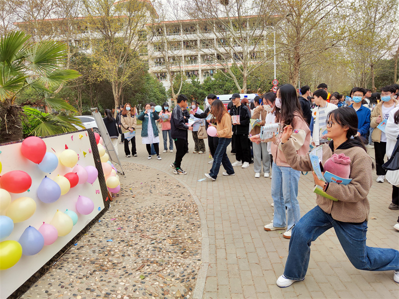 活动期间,公司志愿者协助发放宣传单和宣传品,配合郑州市第三人民医院提供现场健康咨询。现场有背景墙签名、有奖游戏答题及击破气球小游戏等活动,并配置了丰厚的奖品。志愿者负责维持活动现场秩序,提醒同学们不要乱扔垃圾并为气球充气,保证活动道具的充足。活动结束,志愿者们协助其收拾桌椅板凳,捡拾地上垃圾,保持了场地的整洁。