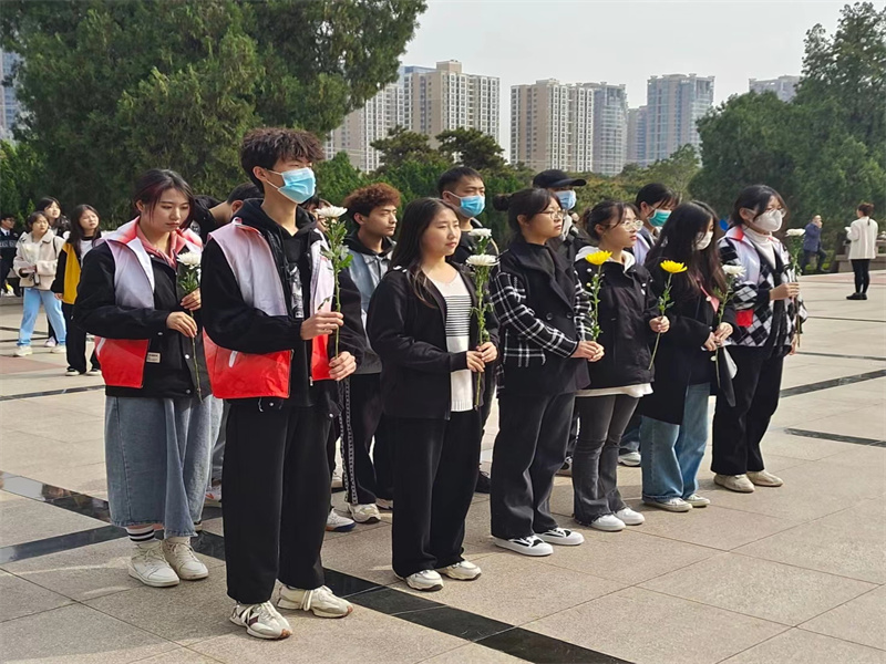 铭记历史,不忘初心,同学们将以积极的态度传承烈士精神,赓续红色血脉,以坚定的意志服从中国共产党领导。鲜花献英雄,深情寄哀思。