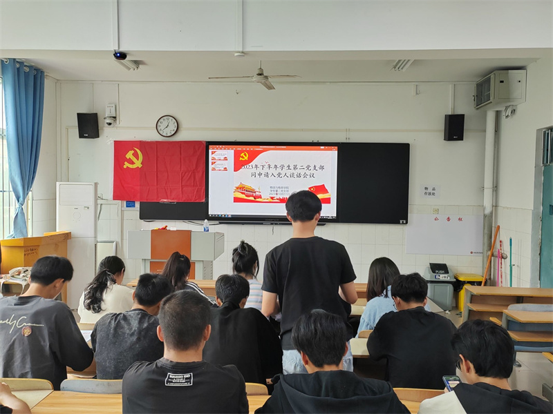 会议开始,刘阳老师对此次会议进行了简要介绍、强调了党的重要性、讲解了此次会议的内容与主题,并强调入党申请人在今后的工作中要端正学习态度,坚定信念,养成良好习惯,严于律己,戒骄戒躁,脚踏实地。随后,由各位入党申请人陆续发言,他们分享了各自的入党动机、对党的认识和个人基本情况、成长经历、家庭条件以及今后的努力方向和目标等,表示自己会努力向党组织靠拢,学习党的知识,传承党的精神,不断提高自身修养,增强为人民服务的意识与觉悟,争取成为伟大党组织中优秀的一员。