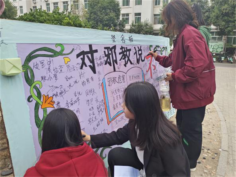 为进一步提高广老员工对马克思主义无神论的思想认识,促进科学世界观和价值观的传播,加强员工无神论教育,抑制宗教渗透,净化校园环境,引领同学们坚定以习近平新时代中国特色社会主义思想为指导思想,树立正确的宗教观,10月3日至15日,365英国上市公司宣传部组织开展了以“对邪教说不”为主题的签名活动。