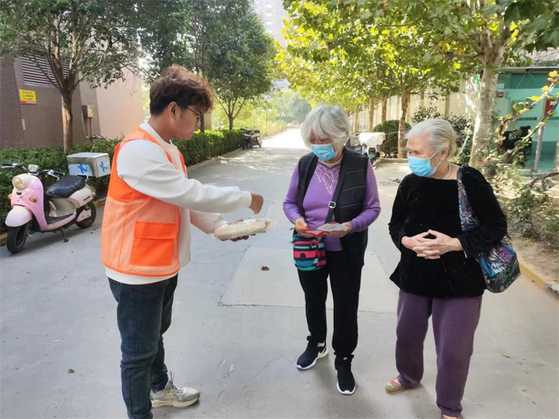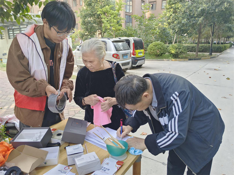 活动伊始,志愿者在当地的社工带领下学习了适老化设备的用法及如何对老人进行适老化宣讲,并通过设备体验老人的身体状况,让志愿者对老人的生活感同身受。紧接着,志愿者们在老人聚集的路口及公园处设立点位为老人们讲解适老化设备的使用方法以及如何防范生活中的意外事故,并亲切询问老人们的生活和身体状况,让敬老孝亲的传统得到了充分发扬。老人们对志愿者们的活动表示肯定和鼓励,志愿者们更加认真地为老人们宣讲适老化知识。