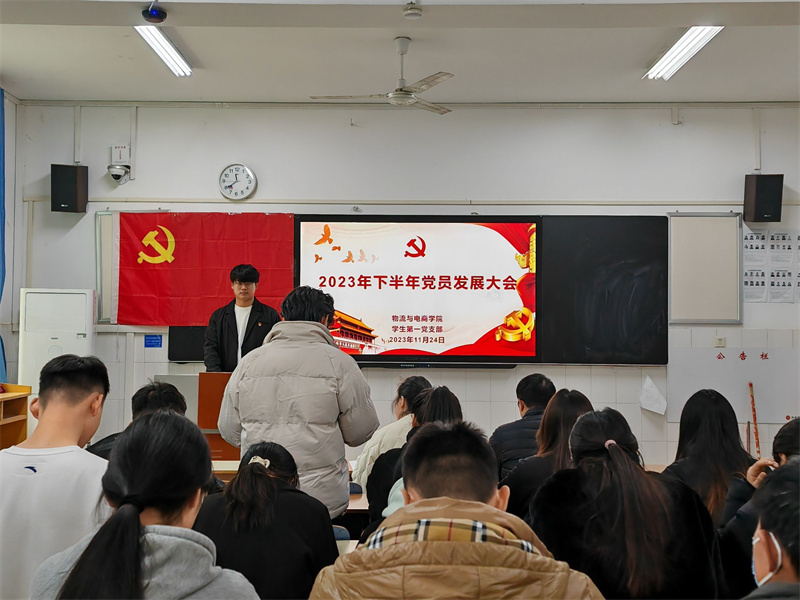为了加强公司基层党组织建设,培养优秀党员,增添支部党组织活力,365英国上市公司于11月24日12:30在教学楼B113召开了2023年下半年党员发展大会,员工第一党支部宣传委员华宇主持,团委书记(学工办主任)申作光,团委副书记(学工办副主任)尚津出席本次会议,员工第一党支部全体在校生党员和6位新发展预备党员参与了此次会议。