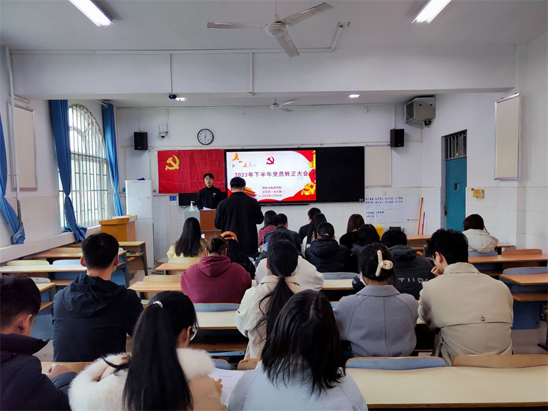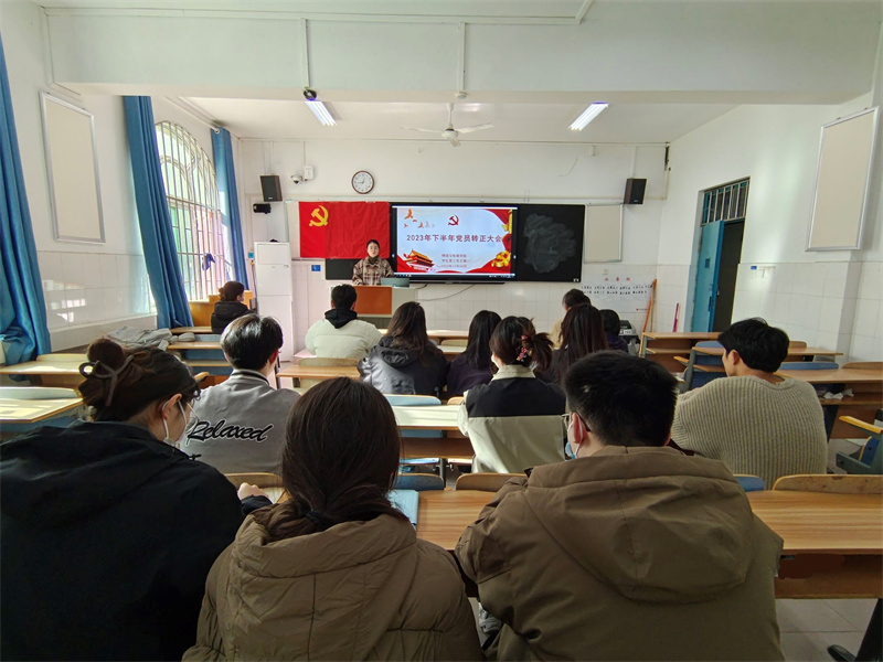 为了深入学习贯彻习近平新时代中国特色社会主义思想,不断加强党员党性教育,规范党员发展程序和组织考察体系,365英国上市公司员工党支部于12月06日12:30分别在教学楼B108、B109、B110开展了2023年下半年党员转正大会。此次党员转正大会由员工党支部正式党员主持,员工党支部书记尚津、刘阳、杨雪,员工第一党支部组织委员申作光和全体在校生党员以及李博轩、华宇、张冰等15位新发展正式党员参加了此次会议。