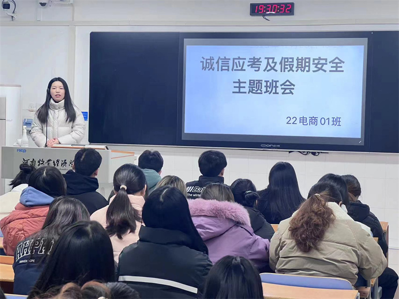 班会伊始,各班老师直切主题强调诚信考试的重要性及作弊行为的严重性,呼吁员工坚守诚信考试,远离弄虚作假。紧接着进入假期安全主题,安全问题不容忽视,各班老师嘱托大家要关爱自己,紧绷安全之弦,要时刻注意交通安全和防火安全,树立起强烈的安全防护意识,并提醒员工假期期间一定要防止上当受骗,坚决反对邪教和西方非法宗教,切勿被蒙蔽双眼,要坚定马克思主义宗教观和无神论。随后老师指出了近期宿舍卫生问题,并制定出合理的解决方案,强调注重宿舍个人卫生,预防身体疾病,鼓励员工在努力学习专业知识的同时一定要加强锻炼自己其他方面的能力,积极与老师交流,促进自我全面发展。