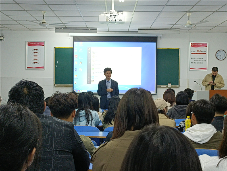 会前,就业专干刘阳老师组织同学们入座并与同学们积极沟通,希望切实了解同学们就业需求以便做好下一步的企业招聘的对接工作,更好的服务毕业生的就业需求。在热烈的掌声之后,曹经理向大家介绍两家企业的招聘负责人,此次来院宣讲的两位企业负责人都是从公司毕业的学长,两位学长在自己的岗位上勤劳奋斗、闪闪发光,如今回到公司助力学弟学妹们早日找到心怡工作。首先最后五公里:谋业者的负责人常百保学长向我们介绍了他的公司—杭州最后五公里科技有限公司,秉持着天下事无难易,不为则难,为之则易的人生格言坚持带领企业走中高端业务+优质服务路线,因地制宜制定司机定人定区服务,在杭州末端配送占有自己的一番天地。云众物流高管黄冠翔学长说文解字向我们介绍了何为云众—云技术是指在广域网或局域网内将硬件、软件、网络等系列资源统一起来,实现数据的计算、储存、处理和共享的一种托管技术;众字,初文始见于商代甲骨文,其古字形像多人在烈日下劳动,本义是许多人,引申为许多,坚持做一家有温度的物流企业,独特的运营方式,吸引在座毕业生,同时黄冠翔学长向大家发出邀请函,希望大家来实地参观并加入他们成为并肩作战的战友。