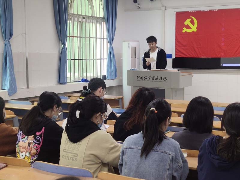 活动开始,由员工第二党支部书记刘阳老师发表讲话,阐述政治理论学习对党支部和党员发展的重要性,并带领员工们共同学习本次政治理论学习活动的内容。她指出本次学习活动的目的在于通过对习近平总书记讲话的内容教育员工党员们跟上时代发展潮流,建立思想的前瞻性和先进性,建立对我们国家政治制度和社会制度发展的历史认同和政治认同。接下来,刘阳老师鼓励员工党员们积极提出对于政治理论学习后的见解,员工党员们踊跃上台发表自己的看法,认为应该通过不断地学习来提高自己的认识。党员们一一发言之后,刘阳老师对党员们的发言进行了评价,并提出了自己的殷切希望,教导员工党员们要肩负起自己作为一名党员的责任和义务,促成了本次政治理论学习活动圆满结束。