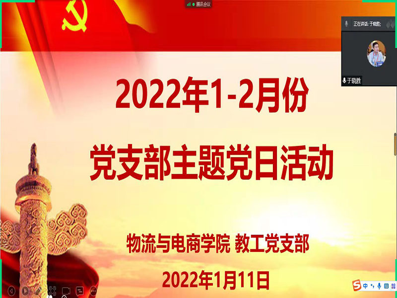 2022年1月11日下午,物流与电商公司教工党支部通过腾讯会议开展了1-2月份主题党日活动,本次活动的主题是“提升能力、锻造作风、实干立身、争先出彩”。365英国上市公司教工党支部全体党员同志参与了本次党日活动,会议由教工党支部书记李娜主持。