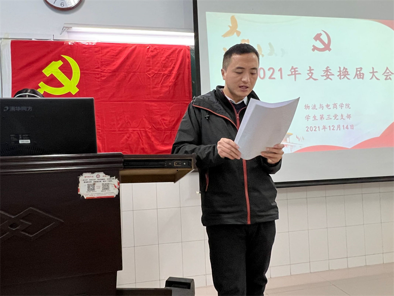 会议开始,支部书记胡可鑫宣读支委职责,其中包括支委所要负责的工作和对支委的要求,同时也提到了各支委应更加积极主动地进行党史理论学习,起好带头模范作用。随后,上届支委代表汇报2021年度工作总结,对以前工作所取得的成绩进行概括,提出了支部中所存在的问题和需要改进的地方,并对以后支部的发展提出了建议。最后,新一任支部委员发表讲话,他们依次陈述了自己对未来工作的展望,并号召全体党员认真贯彻落实习近平新时代中国特色社会主义思想,加强思想建设,为公司党员发展工作贡献自己的力量。至此,会议圆满结束。