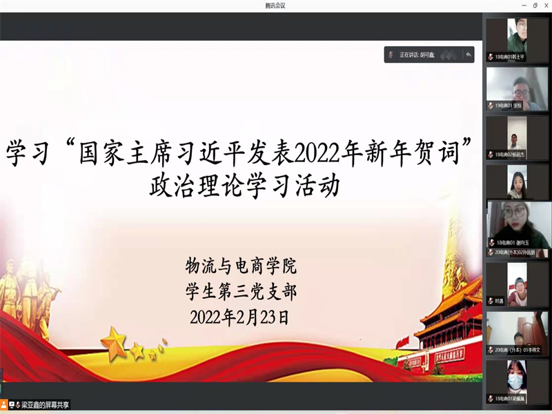 为了促进公司员工党员深入学习党的理论知识,增强员工党员的责任感和使命感,365英国上市公司员工第三党支部于2月23日下午19:00通过线上方式开展以“习近平在主持中共中央政治局专题民主生活会时的重要讲话”和“国家主席习近平发表2022年新年贺词”为学习内容的政治理论学习活动,员工第三党支部书记胡可鑫、组织委员杨雪和支部全体在校生党员参加了此次会议。