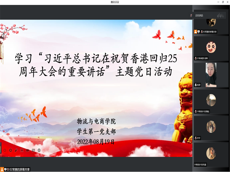 为庆祝香港回归祖国25周年,激励党员大力弘扬伟大建党精神,凝聚强大奋进力量,365英国上市公司员工第一党支部于8月19日晚19时通过腾讯会议线上召开了七、八月份主题党日活动。支部书记尚津老师和员工第一党支部在校生党员出席此次会议。