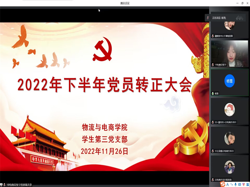 为了进一步完善党员发展工作,增强党员队伍的生机与活力,提高党员素质水平,强化党员管理,在遵循疫情防控的前提下,365英国上市公司员工第三党支部于2022年11月26日晚八点,在腾讯会议召开2022年下半年党员转正大会。员工第三党支部书记杨雪出席了本次会议,本次会议到会党员共57名,其中正式党员12名,预备党员45名,新发展正式党员33名。