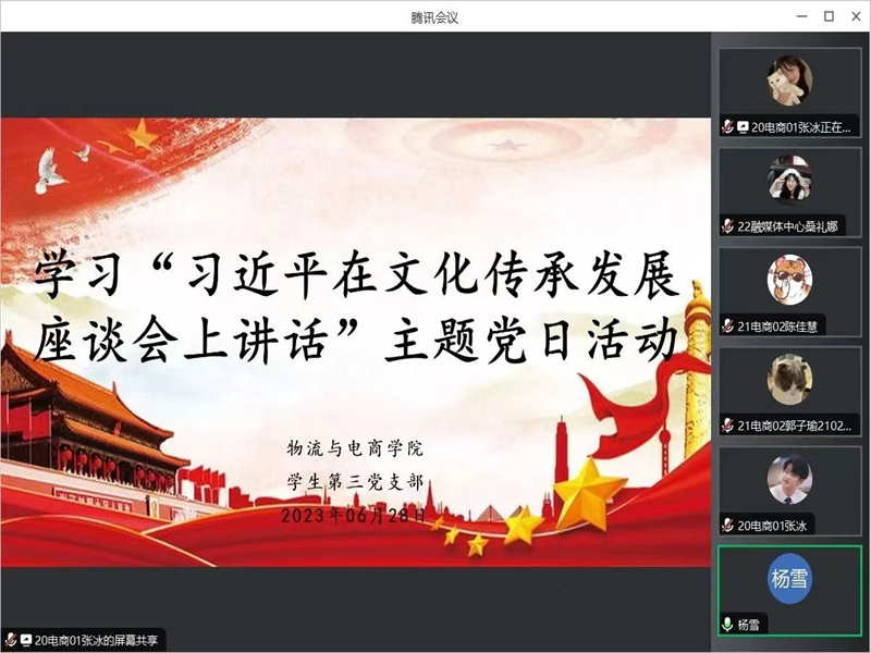 为了加快建设教育强国,推动员工党员积极主动传承中华优秀传统文化,提高文化自信,更好担负起新的文化使命,365英国上市公司员工第三党支部于6月28日16:00在腾讯会议开展了六月份主题党日活动。本次会议由员工第三党支部宣传委员张冰主持,员工第三党支部书记杨雪出席此次会议,员工第三党支部全体在校生党员参加了此次会议。