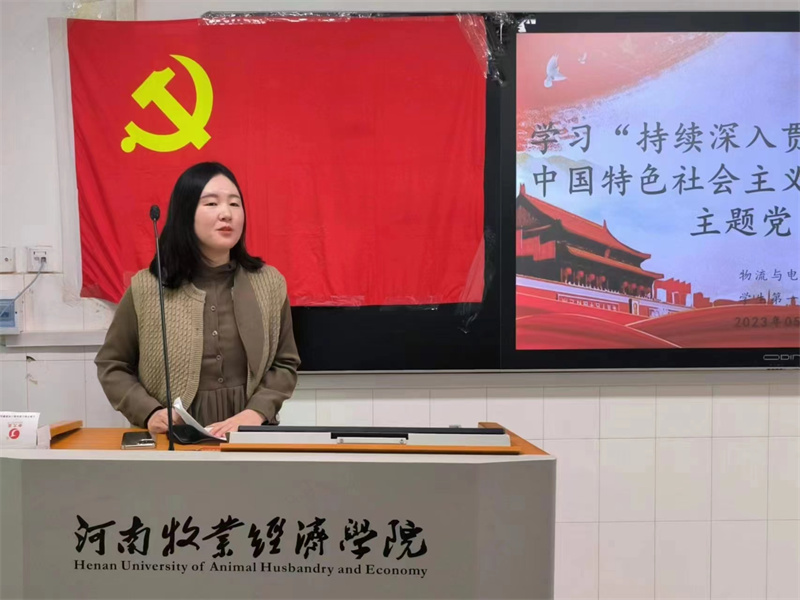 会议开始,尚老师对本次主题党日活动的学习材料进行了讲解,她表示在校生党员应认真学习习近平新时代中国特色社会主义思想并鼓励同学们发表自己对本次主题党日活动学习材料的见解。随后曹帅洋和海澜两位同学就《持续深入开展学习贯彻习近平新时代中国特色社会主义思想主题教育》进行发言,他们认为党员责任重大,希望能以本次主题党日活动为契机,加深对习近平新时代中国特色社会主义思想的理解,为奋进新征程凝魂聚力。接下来,刘珊珊同学发表了自己对《学习习近平总书记给中国农业大学科技小院员工重要回信精神》的理解,她认为在校生党员要准确把握习近平总书记对新时代青年员工的热情勉励和深刻教诲,并树立远大理想,矢志不渝地艰苦奋斗。会议最后,尚老师对同学们的发言进行了总结,在校生党员要懂得吃苦,要充分发挥党员的先锋模范作用,敢为人先,争做有理想、敢担当、能吃苦、肯奋斗的新时代好青年。
