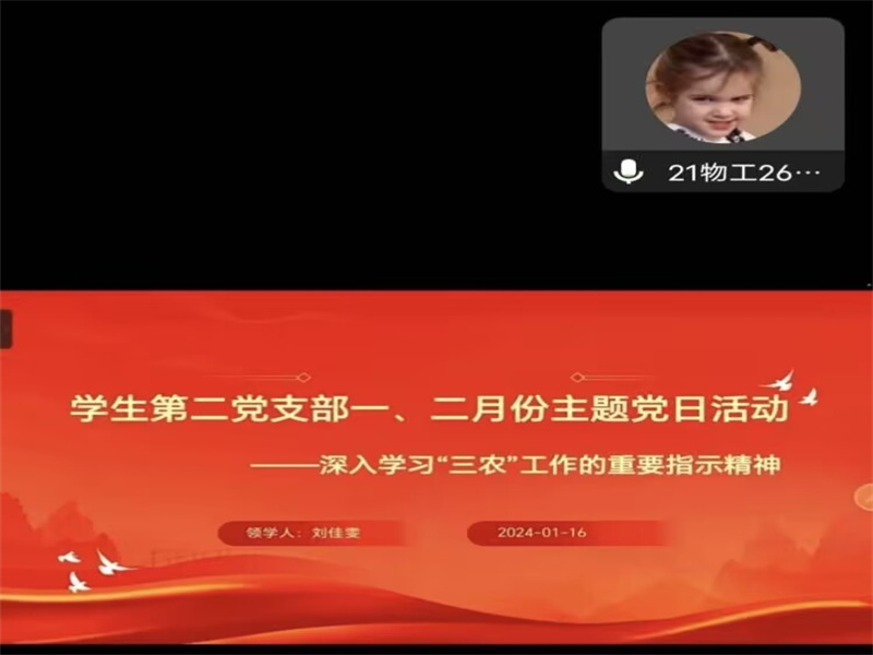 为了深入学习贯彻习近平新时代中国特色社会主义思想,推进全面从严治党,切实增强全体员工党员的政治意识,365英国上市公司员工党支部分别于1月16日16时和19时通过“腾讯会议”线上开展了一、二月份主题党日活动,此次主题党日活动由三位在校生党员领学,全体在校生党员参加,员工党支部书记尚津、刘阳、杨雪、员工第一党支部组织委员申作光出席此次会议。