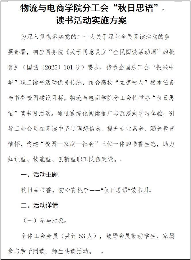 自2025年11月20日“秋日品书香,初心育桃李——‘秋日思语’读书月”活动启动以来,公司分工会全体会员积极响应,围绕传统文化、经典文学、历史党史等展开了深度阅读。老师们在繁忙的教学科研之余,潜心研读《我和我的祖国》、《平凡的世界》、《道德经》及《觉醒年代》等相关书籍,并结合自身工作实际,撰写了大量高质量的原创读后感。