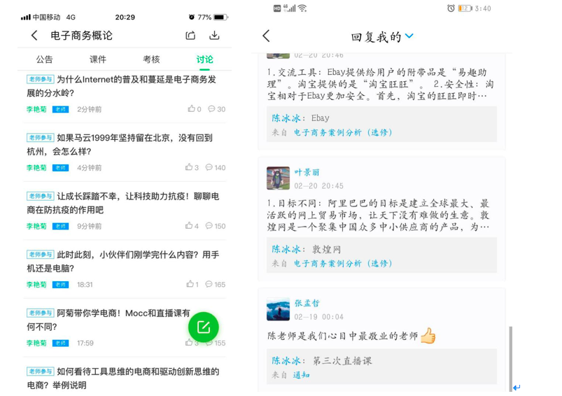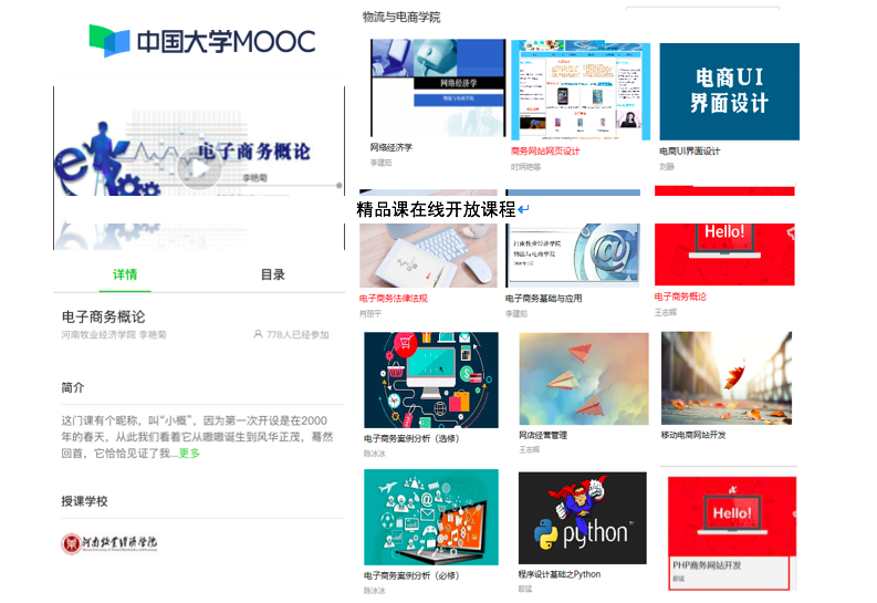二是发挥优质课程的优势。《电子商务概论》课程以打造学习者就业竞争力为培养思路,以“有品位的电子商务应用人士、有思想的网络业务开拓者、有使命感的网络商务创业者”为核心目标,从知识目标、能力目标和态度目标上培养学习者的综合能力。结合电子商务行业特点,抛开传统的学科教学体系思路,重构“网商职业能力要求”环境下课程教学体系。2011年11月遴选为“河南省高校精品课程建设项目”,2013年遴选为“河南省高校精品资源共享课程”,2019年遴选为“河南省高校精品在线开放课程”。因而在此次网络教学中,持续发挥该课程的能量,在中国大学MOOC发布,共电子商务专业的员工和电子商务从业者和爱好者自主学习和研修。