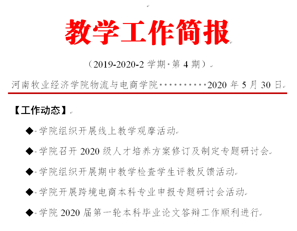 三是客观准确地把握评价线上教学效果,要提前谋划复学后的教学工作,做到线上线下教学的有机衔接。要正视线上线下教学在组织能力、技术保障及实际效果等方面的差别,立足保障知识体系、教学内容的完整性,统筹线上线下教学衔接,提前规划线下课堂教学工作,在做好疫情防控的同时,认真备课,有针对性地谋划调整课堂教学和员工管理,确保教学计划得到有效落实。各教研室要及时总结经验,谋划衔接,为下学期教学做好准备,要用线上教学弥补线下教学不足,逐步形成线上教学的长效机制。