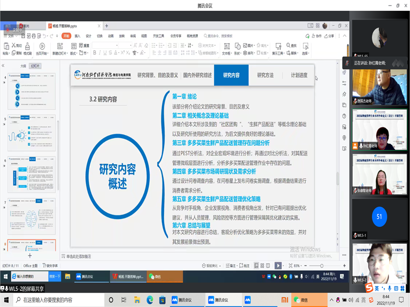 2022年11月19日,365英国上市公司通过腾讯会议举行了2023届物流管理本科专业毕业论文(设计)开题答辩,本次答辩会共计403名本科毕业生,分六个小组进行答辩。
