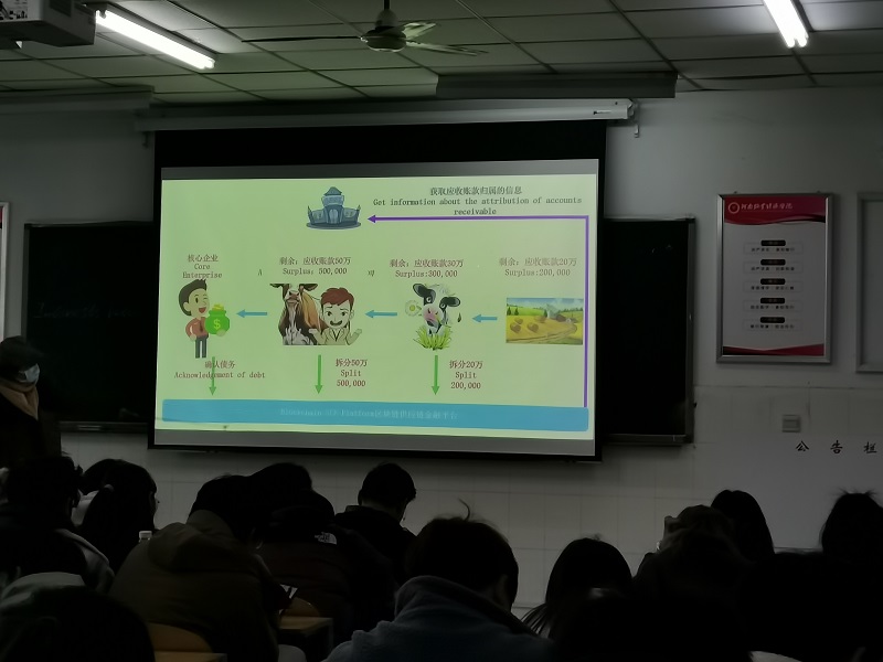 苗洁莹老师本次观摩课的授课主体为21 国教物流(专) 01、02、03班,基于“5E”教学方式的应用,通过资料收集、案例分析、问答互动等多种教学方法,以员工自学、批判性思考、自主探究、实践练习、实时反馈为主,以教师引导性讲授和评价为辅,让员工站在整体的角度上把握现代供应链金融的基础原理和理论,在此基础上熟练掌握供应链金融模式实战的技术技巧。苗洁莹老师的课堂内容丰富,思路清晰,先用模拟融资场景帮助大家理解融资/金融的含义,之后利用买卖牛的故事生动诠释了区块链技术与供应链金融的融合,将晦涩难懂的理论通过故事浅显易懂地展示出来。同时,课堂通过引导式问答互动,充分调动员工的学习积极性,能够启发和鼓励员工思考,培养员工分析问题、解决问题能力。授课过程,通过中央金融工作会议的重点圈讲,将课程思政自然充分地融入课堂,充分展示了公司优秀青年教师的教学风采。