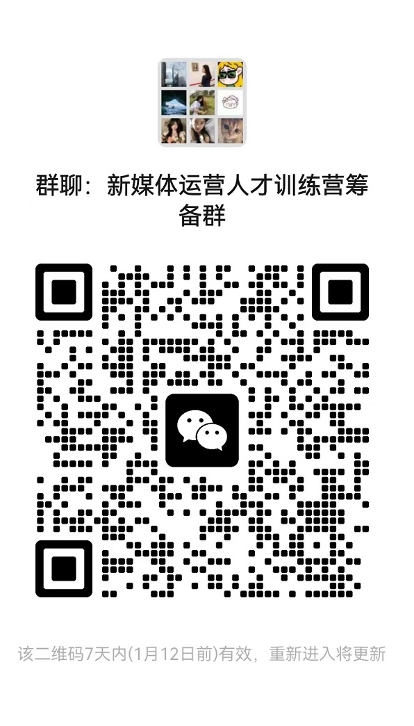本次招募采取院系推荐、自主报名相结合的方式。各位同学可扫描下方二维码加入“新媒体运营人才训练营交流群”获取报名表,了解更多信息。