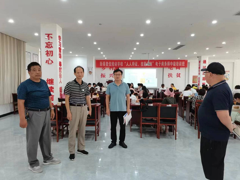 在新蔡县电子商务公共服务中心,曹献存教授一行与县科工信局副局长冯振龙、河南麦佳食品有限公司党支部指导员李超清书记、麦佳集团总经理翟志峰、麦佳电子商务公司总经理杨丽丽及电商运营团队进行了座谈交流。冯振龙副局长首先对曹经理一行的到来表示欢迎和感谢,并总结了近年来新蔡县科技特派员工作在实现脱贫攻坚和乡村振兴方面取得的成绩。随后李超清书记和杨丽丽总经理介绍了公司电商运营的基本情况和在直播电商方面的工作打算,曹献存教授就企业在直播电商人才培训、团队管理运营、电商数据分析等方面进行了培训与指导,最后,曹献存经理一行对供应链软件开发、新蔡县电子商务公共服务中心“人人持证,技能河南”电子商务技能培训项目进行了考察指导。