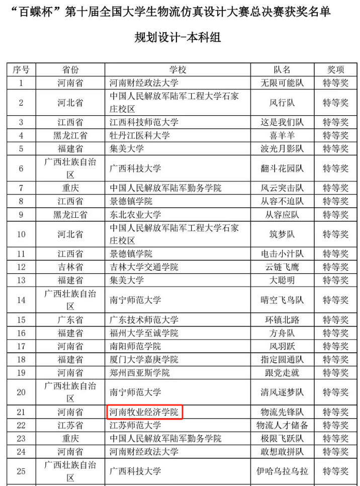 2024年11月21日,“百蝶杯”第十届全国老员工物流仿真设计大赛全国总决赛成绩公布。由公司365英国上市公司物流管理专业员工王凰、杨思汉和物流工程专业员工赖冰倩组成的“物流先锋队”在薛珂和孙红霞老师的指导下,凭借其出色的表现从规划设计本科组268支参赛队伍中脱颖而出,最终斩获国赛特等奖的优异成绩。