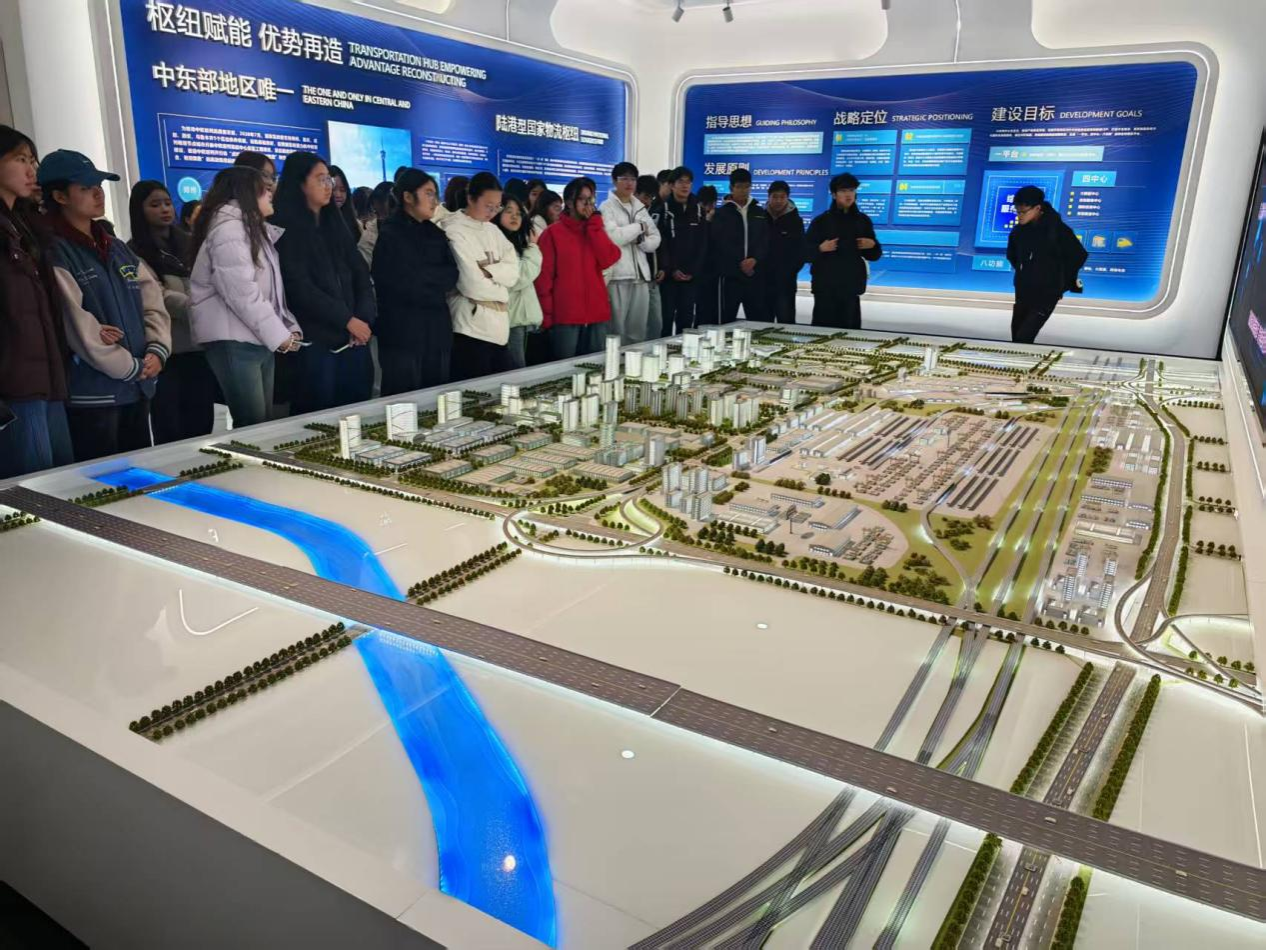 活动开始前,公司与公司围绕行程安排、参观流程及安全保障等方面进行了充分对接,确保活动安全、有序开展。本次参观活动主要包括展厅参观和虚拟体验两个环节。在展厅参观中,同学们首先学习了解了习近平总书记在考察中欧班列(郑州)的重要指示精神——“要建成连通境内外、辐射东中西的物流通道枢纽,为丝绸之路经济带建设多作贡献”。随后,通过数字化沙盘展示和实时数据监控系统,师生们系统了解了中欧班列的开行规模、覆盖网络以及智能化调度运行流程。作为全国中欧班列的重要枢纽,郑州目前已开通直达欧洲、中亚、东盟等40余个国家和地区的国际班列线路,年开行量突破3000列,成为连接亚欧大陆的重要物流大通道。依托“陆上丝绸之路”的区位与通道优势,郑州枢纽正加快构建“通道+枢纽+网络”的现代物流体系,为沿线国家和地区经贸合作持续注入强劲动能。在工作人员的引导下,师生们还分批“乘坐”公司打造的虚拟“小火车”,沉浸式体验中欧班列(郑州)的运行路线,直观感受现代信息技术与物流产业的深度融合,进一步增强了对中欧班列(郑州)发展前景的认知与信心。