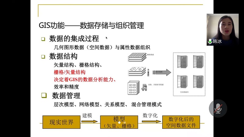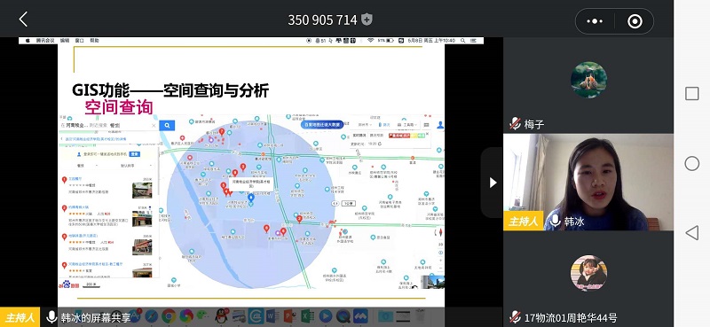 韩冰老师精心准备了此次观摩课,将课程思政、教学方法及多媒体教学手段与教学实际有机融合,在课堂上既重视理论讲解,又启发员工思维、培养员工学习兴趣,让听课的师生充分感受到了教师扎实的专业知识、周密的课堂设计以及高超的课堂驾驭的能力。在线课堂上,韩冰老师将超星学习通和腾讯会议在线教学工具巧妙结合,通过图文并茂的课件、形象生动的讲解、准确精彩的示范,依托地理信息系统应用案例系统地讲授了地理信息系统定义、组成、功能、应用等教学内容。课堂互动气氛活跃,交流热烈。